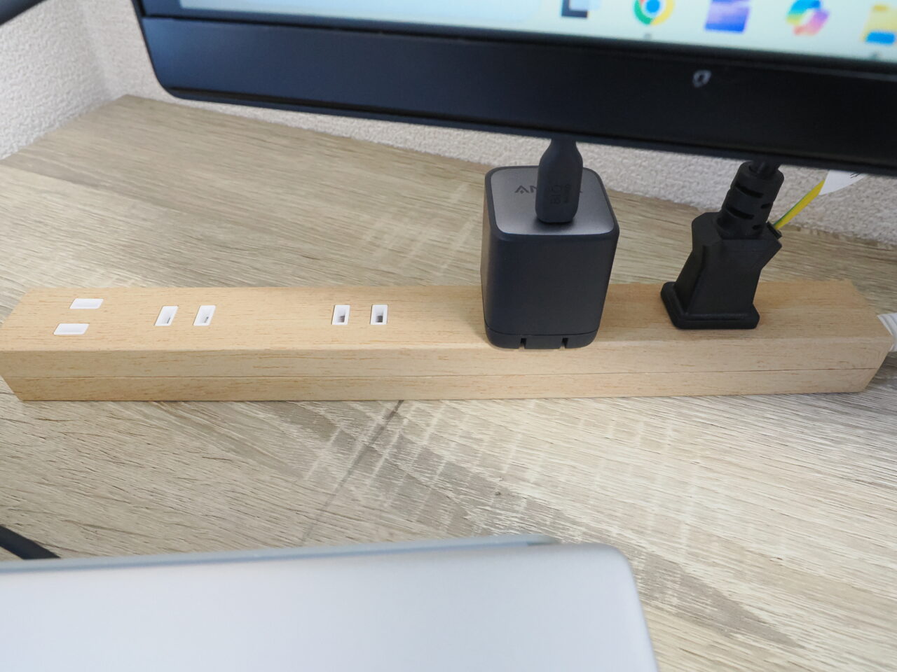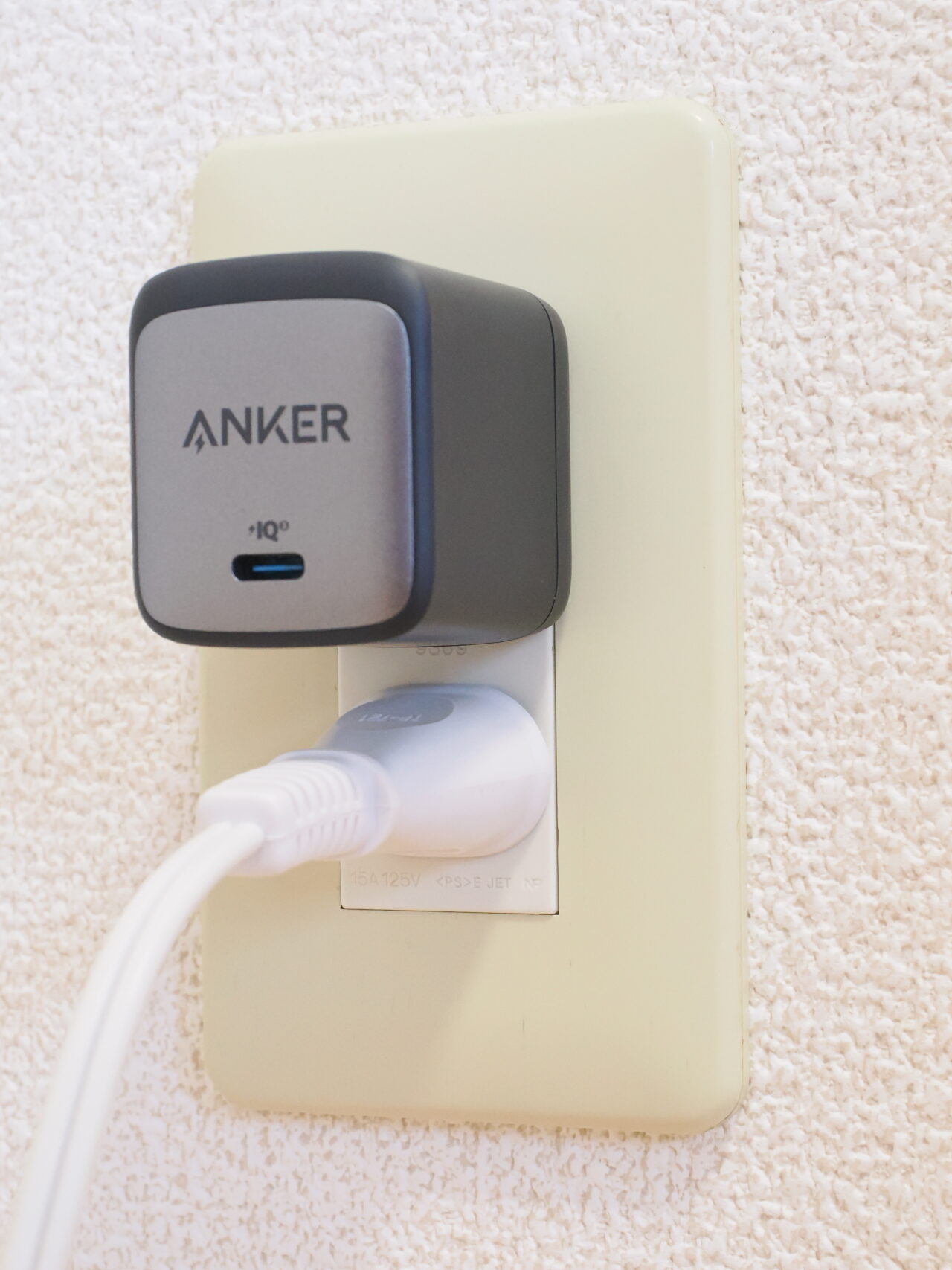 Anker Anker Nano II 65Wはコンパクトなため、コンセントに差しても隣のコンセントもちゃんと使える大きさです。