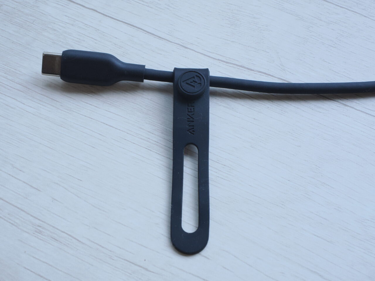 Anker 543 エコフレンドリー USB-Cは、ケーブルタイが付いていて、使わないときや持ち運びの時にひとまとめできます。
