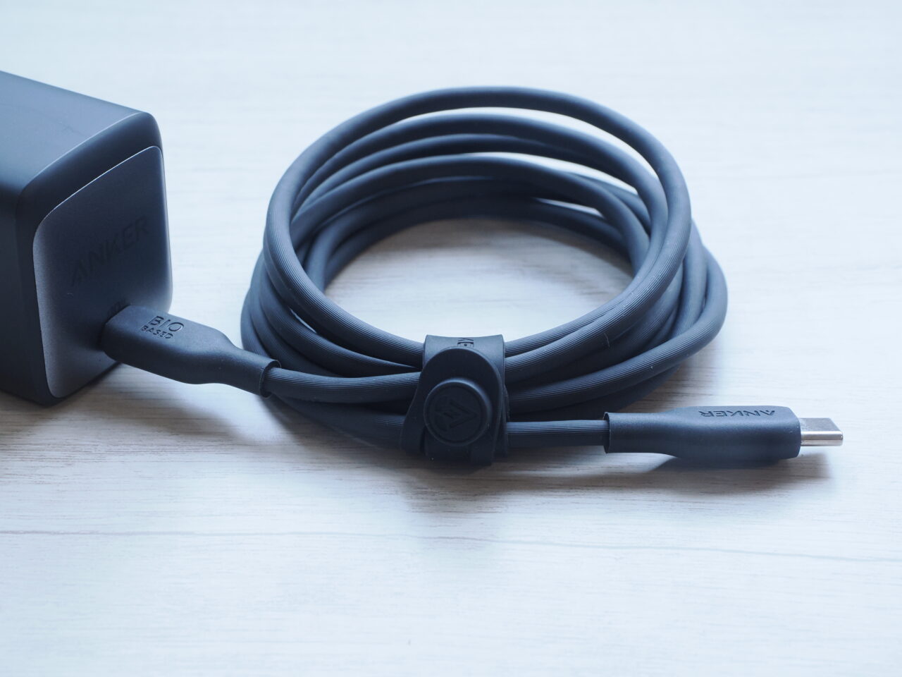 また、Anker 543 エコフレンドリーには、巻き癖をキープするような慣性を持っています。省スペースな場所で使うとき、持ち運びの際にケーブルを簡単にまとめて、邪魔にならないようにできます。