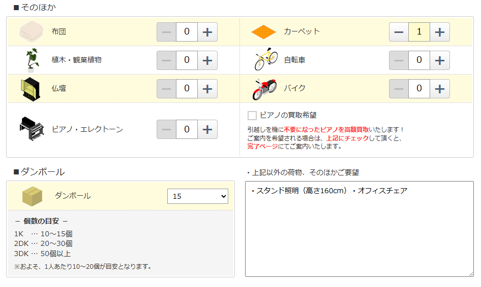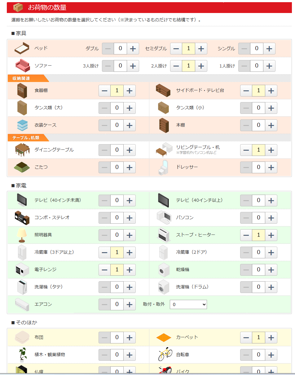 ちなみに引越しの前提条件は、引越しのオフシーズン・荷物は単身では多め・近距離(50km以内)という内容です。