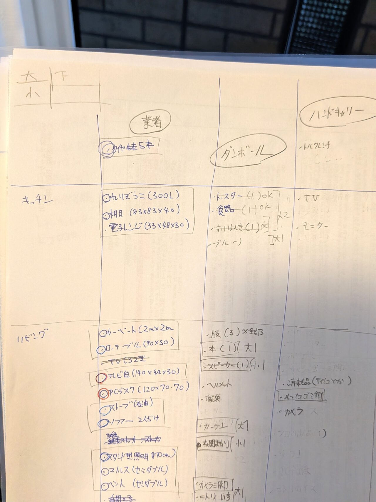 まず、家の中の荷物をリスト化する